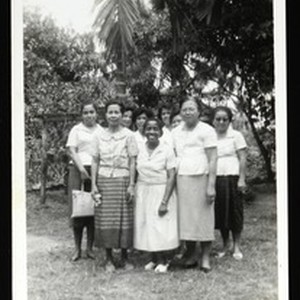 Photograph of "Sis[ter] Grace Fawly [&] women group of the Church of God in Christ, Thomie, Thailand -- 12 saved women" -- written on back. [Description English/roman)]