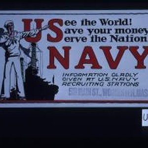 U.S. Navy. See the world. Save your money. Serve the nation. Information gladly given at U.S. Navy Recruiting Stations. Stamp: 518 Main St., Worcester, Mass