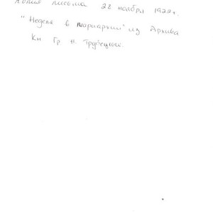 Mitropolit Elevferii(Litovskii). Kopiia pis'ma 28 noiabria 1922. "Nedelia v patriarkhii." Iz arkhiva kn. G. N. Trubetskogo