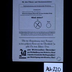So muss du abstimmen fur den Fuhrer und Grossdeutchland. ... Wiedervereiningung Osterreichs mit dem Deutschen Reich ... Hitler ... Ja zum wiederaufbau Osterreichs!