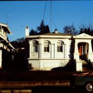 Slide, color transparency: 1929 Spanish Revival house at 650 South Main Street, Sebastopol, California, 1976