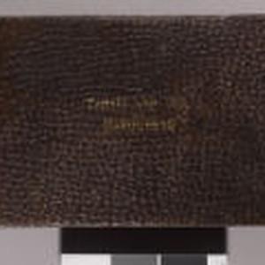 Bound in brown, faux animal skin material. The title, "Tahiti and the Marquesas," is embossed in the center of cover in gold lettering. The number "57" is affixed to the top of spine with glue. Images are of people and places taken while the London's and the Snark crew, including Martin Johnson, were in Tahiti and the Marquesas Islands. This album has been heavily used. While outside surface has only moderate wear, many inner pages have been removed and replaced, or come apart from the spine.