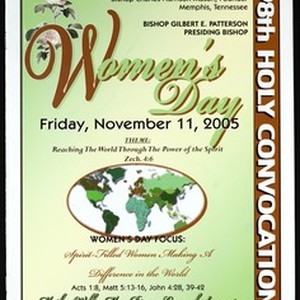 Women's day program, "Spirit-filled women making a difference in the world", 98th Annual Holy Convocation of the Church of God in Christ, Memphis, Tennessee, 2005 November 11. [Description English/roman)]