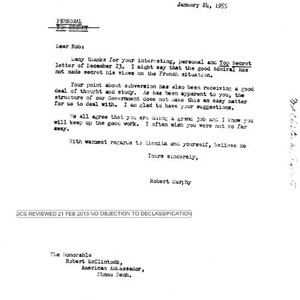 Robert Murphy correspondence with Robert McClintock regarding Admiral Raddy Radford