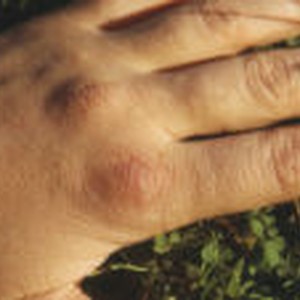 Close up of Patsy Dickinson's hand taken on April 16, 1972. Seven months after being bitten on the hand by an octopus on November 14, 1972 at Pt. Cayucos, California.