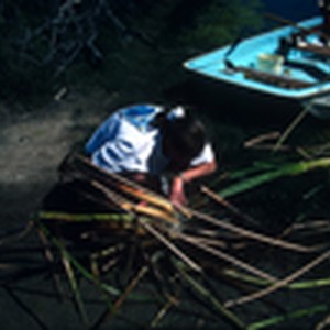 Young woman examining grasses in pHake Lake.