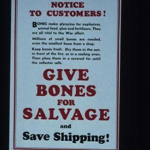 Notice to customers. Bones make glycerine for explosives ... Give bones for salvage and save shipping