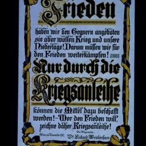 Frieden haben wir den Gegnern angeboten - sie aber wollen Krieg und unsere Niederlage! Darum mussen wir fur den Frieden weiterkampfen! Nur durch die Kriegsanleihe konnen die Mittel dazu beschafft werden! Wer den Frieden will, zeichne daher Kriegsanleihe! Wien, im November 1917. Der Burgermeister: Dr. Richard Weiskirchner