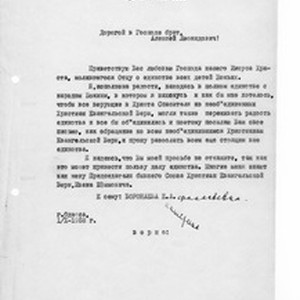 A personal letter from E.A. Voronaev to Aleksei Leonidovich Andreev, senior presbyter over Ukrainian SSR, Odessa, 1 October 1958. [Description English/roman)] Личное письмо Воронаевой Е.А. Ст. Пресвитеру по Украинской ССР, Алексей Леонидович Андрееву, Одесса 01.10.1958 год. [Description (original non-English/roman language/script)]