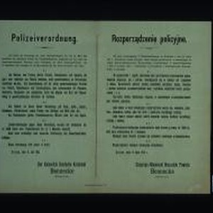 Polizeiverordnung ... Am Montag und Freitag durfen Fleisch, Fleischwaren und Speisen, die ganz oder teilweise aus Fleisch bestehen, niche gewerbsmassig an Verbraucher verabfolgt werden. ... Grojec, den 11. Juli 1916. Der Kaiserlich Deutsche Kreischef Bennecke, Rittmeister. Rozporzadzenie policyjne. ... Cesarsko-Niemiecki Naczelnik Powiatu Bennecke, Rotmistrz