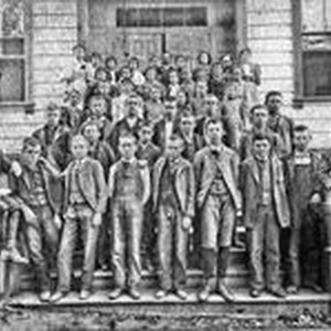Photo--black and white: 1896 photo of Sebastopol Grammar School class. Starting at top row L-R: 1. Maud Newell 2. Lizzie Scudder 3. Maud Palmer 4. Mable Huntley 5. Eloise Allen 6. Professor Hocker 7. Marion Thomson 8. Eliza McKenzie 9. Mattie Drake 10. Mary Bartley 11. Ellen Ward 12. Lottie Bartley 13. Mamie Corpe 14. Lena Blazer 15. Bessie Oivene 16. Minnie Worden 17. Alice Beattie 18. Myrtle Cadogain 19. Bertha Styles 20. Flora Vier 21. Etta Hiller 22. Mary Ward 23. Mattie or Mable Hiller 24. Delia Kimbel 25. Walter Cromrine 26. Charlie Ward 27. Charlie Nelson 28. Irvine Ames 29. Frank Yeagley 30. Willie Wilson 31. Leon Schomaker 32. Benson Rutherford 33. Clarence Miller 34. David McKenzee 35. Frank Kimbel 36. Henry Gould 37. Dick Culver 38. Ben Corbin 39. Robert Folger 40. Angelo Pellini 41. Louis Burnside 42. Worth Snow 43. Weimer Benepe.