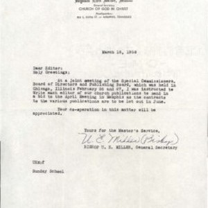 U. E. Miller, letter, 1958 Mar. 16, to D.J. Young Publishing Company editor regarding publishing. [Description English/roman)]