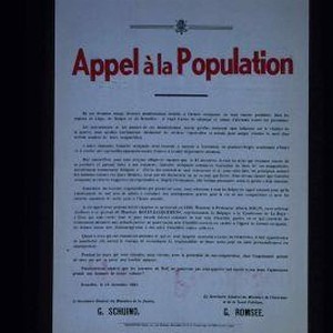 Appel a la population. En ces derniers temps, diverses manifestations hostiles a l'armee occupante se sont encore produites ... Bruxelles, le 18 decembre 1941