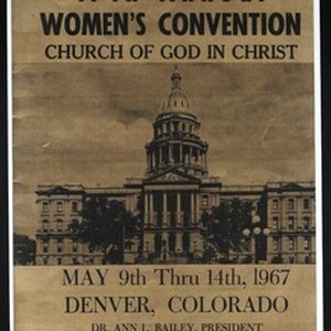 Partial program (cover & page 47 "Sunshine bands") for the 17th Annual Women’s International Convention, Church of God in Christ, Denver, Colorado, 1967 May 9-14. [Description English/roman)]