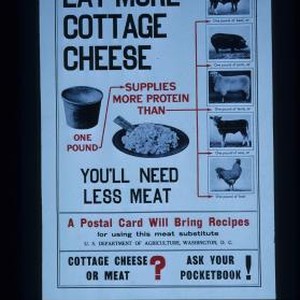 Eat more cottage cheese; one pound supplies more protein than ... you'll need less meat; a postal card will bring recipes for using this meat substitute