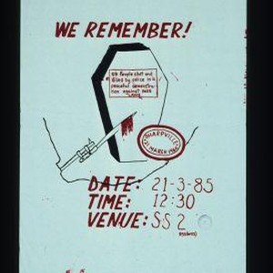We remember! 69 people shot and killed by police in a peaceful demonstration against PASS Laws. Sharpville ... 1960 ... Date: 21-3- 85