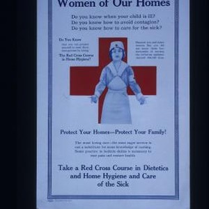 Women of our homes. Do you know when your child is ill? Do you know how to avoid contagion? Do you know how to care for the sick? ... Protect your homes - Protect your family! The most loving care - the most eager service is not a substitute for some knowledge of nursing. Some practice in bedside duties is necessary to ease pain and restore health. Take a Red Cross course in dietetics and home hygiene and care of the sick