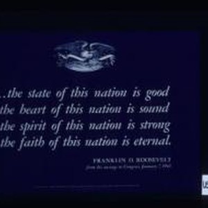 the state of this nation is good/The heart of this nation is sound/The spirit of this nation is strong/The faith of this nation is eternal. Franklin D. Roosevelt