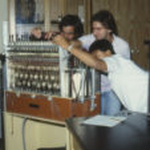 Three people using a Gilson Respirometer.