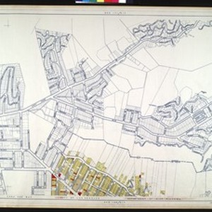 WPA Land use survey map for the City of Los Angeles, book 4 (Van Nuys District to Garvanza District), sheet 18. Includes: [Title page and] legend [for Book] no. IV Composite index to Land use map books [for Book 4]. Land use survey - City of Los Angeles. Department of City Planning. These maps were prepared with the assistance of the Works Progress Administration project no. 665-07-G-226 through 1939 to 1940. The land use data contained herein was compiled from a survey made with the assistance of the Civil Works Administration project no. 642, State Emergency Relief Administration project nos. 1-F2-318 and 1-F2-318A and Works Progress Administration project nos. 65-3-4377, 1101-2011 and 465-03-3-106. This survey functioned from Dec. 18, 1933 to May 8, 1939 and covers approximately 460 square miles within the boundary of the City of Los Angeles. It includes 347 colored drawings bound in 10 volumes of which this is no. IV. The land use survey was supervised by the Zoning Engineer. The land use maps were supervised by the Illustrative Planning Engineer for the Sponsoring Department.
