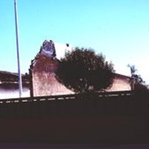 Slides, color transparency: Unidentified brick wall remaining from demolished building. 1977