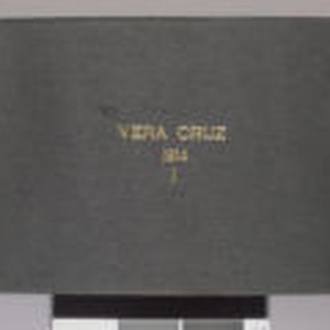 Bound in textured black material. The title "Vera Cruz I / 1914" is embossed in the center of the cover in gold lettering. The number "83" is affixed to the top of spine with glue. Images are of military officers and personnel, US Naval ships, San Juan de Ulau, and the city of Veracruz during the American Occupation. Also includes photographic postcards taken of casualties and destruction during the Mexican Revolution, some by well known photographers such as W. H. Horne and Walter P. Hadsel. Light wear and scuffing over surface. Moderate wear at corners and edges.