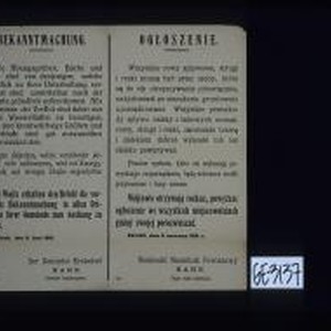 Bekanntmachung. Alle Abzugsgraben ... sind von denjenigen, welche gesetzlich zu ihrer Unterhaltung verpflichtet sind, unmittelbar nach der Heurnte grundlich aufzuraumen ... Kalisch, den 6. Juni 1916 ... Ogloszenie ... Niemiecki Naczelnik Powiatowy, Hahn, Tajny radca rejencyjny