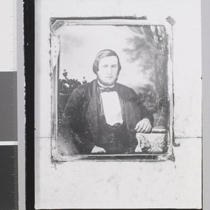 Portrait of Willard Kittredge. Title and date transcribed from envelope. Copy print of original photograph laid on a cloth background. This is not Willard Kittredge, father of Charmian London, but perhaps an ancestor.
