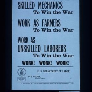 Work as skilled mechanics to win the war. Work as farmers to win the war. Work as unskilled laborers to win the war. Work! Work! Work!