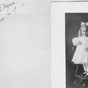 Photo--black and white: Bunni Cornelia E. Myers (1906-2001) as a child of three and a half. Handwritten on photo matt "Cornelia E. Myers June 1, 09." Bunni was a longtime Sebastopol resident and was married to Sebastopol Mayor George Streckfus.