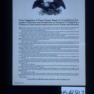 Every suggestion of peace except based on unconditional surrender of Germany and punishment of Germany's criminals is a tribute to crime and an insult to the God of justice and morality