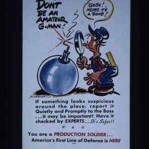 Don't be an amateur G-man. If something looks suspicious around the place, report it quietly and promptly to the boss ... It may be important! Have it checked by experts ... It's safer!! You are a production soldier ... America's first line of defense is here