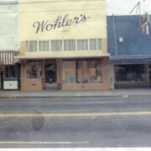 Photo -color: Wohler's department store located at 141 North Main Street in Sebastopol, about 1960. Owner Earl Wohler incorporated Vern Hassett into the radio section of his business in the late 1950s. Hasset later opened his own business in the late 1960s adjacent to Wohler's at 139 North Main Street--seen to the right. As early as 1915 Kelly & Wohler operated the original business as The Fair. The store relocated to 123 North Main circa 1972.