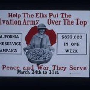 Help the Elks put the Salvation Army over the top. California home service campaign. $822,000 in one week. In peace and war they serve. March 24th to 31st
