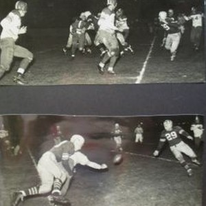Photo--Black and white: Analy High School Football fall1951. Two photos of a night game with Napa. Score: Analy 0--Napa 40.