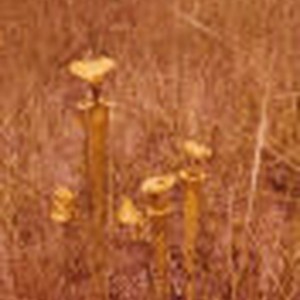 Small group of Gulf pitcherplants growing amongst tall grass in an open field.