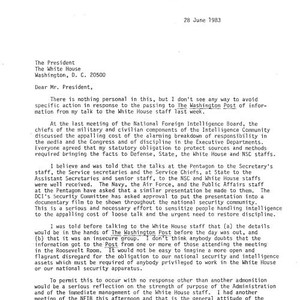 William J. Casey letter to the president regarding leak of information to Washington Post