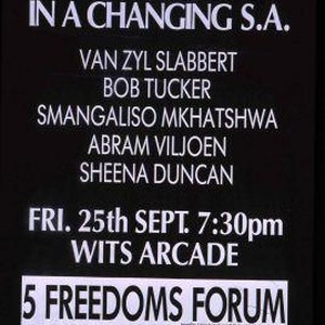 Whites in a changing S.A. Van Zyl Slabbert, Bob Tucker, Smangaliso Mkhatshwa, Abram Viljoen, Sheena Duncan. ... Wits Arcade. 5 Freedoms Forum