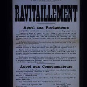 Province de Liege. Ravitaillement. Appel aux producteurs ... appel aux consommateurs ... Liege, le 15 septembre 1944