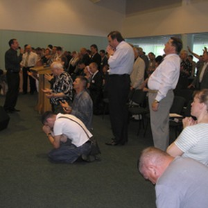 Photograph of people praying at the General meeting, Congress IX, [1990?-2008?]. [Description English/roman)] Фотографии людей молиться в Съезд IX Общее собрание, [1990?-2008?]. [Description (original non-English/roman language/script)]