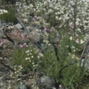 Various flowers in bloom six and a half months after a fire in Cow Canyon Saddle.