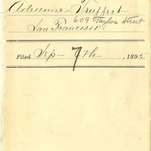 There are no known copyright restrictions associated with these digital images. We encourage the use of these images for personal, study, and educational purposes. Please credit “Courtesy of California State Archives.” The California State Archives and the Friends of California Archives cannot be responsible for any use of these images, or any liability resulting from their use. The Archives is interested in learning about any possible copyright restrictions and will gladly remove any image that is in violation.