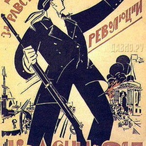 A poster dedicated to the Red Navy. Captions read, "Da zdravstvuet avangard revoliutsii -- Krasnyi Flot / Да здравствует авангард революции - Красный Флот", meaning, "Long live the Red Navy, a vanguard of the revolution". [Description English/roman)]