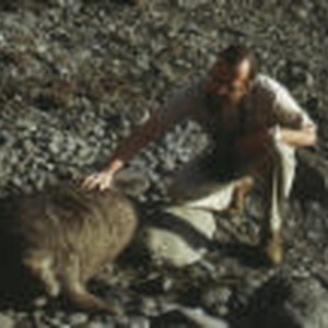 Bill Wirtz touching a baby elephant seal.