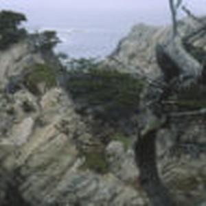 Cypress trees grow on top of the rocky cliffs at Point Lobos.