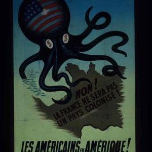 Non! La France ne sera pas un pays coloniste! Les americains en Amerique! ... cette affiche a ete payee avec les fonds collectes par les travailleurs des usines Renault