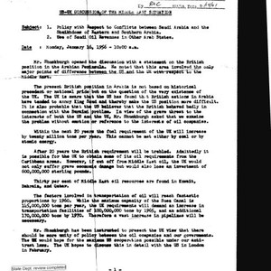 Memo regarding policy with respect to conflicts between Saudi Arabia and the sheikdoms of Eastern and Southern Arabia and to use of Saudi oil revenues in other Arab states