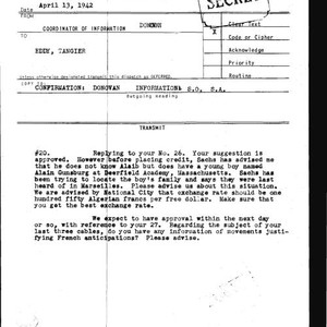 Donovan dispatch to Eddy, Tangier, number 20 regarding Alain