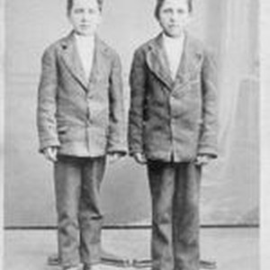 Photo--black and white Carte-de-visite: Two unidentified boys, about 1860s. Photograph by T. L. Rea & Co. Santa Rosa, CA.