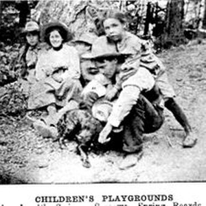Children at the Camp Meeker playgrounds, equipped with swings, seesaws, spring boards and Merry-go-rounds near the Russian River, 1907.